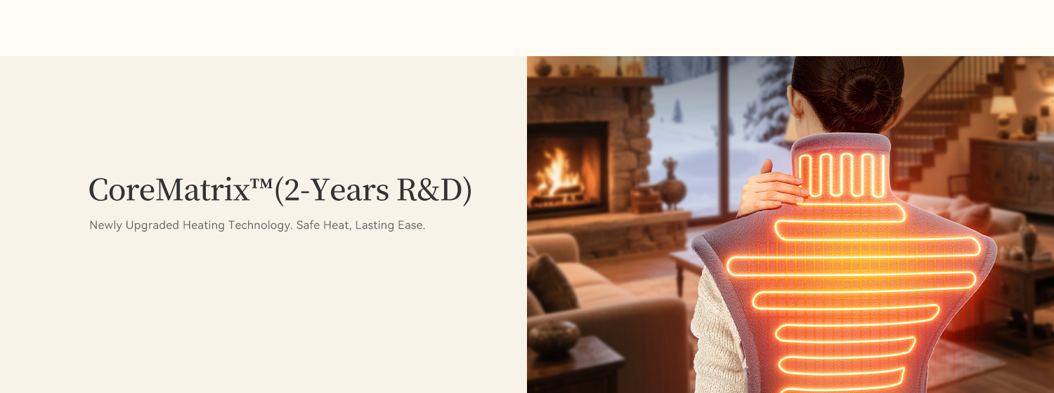 Powered by CoreMatrix™ Rapid Heating with 30% more heating wires, this pad delivers faster, more consistent warmth to help soothe muscle tension, ease back discomfort, and provide comfort during monthly discomfort.