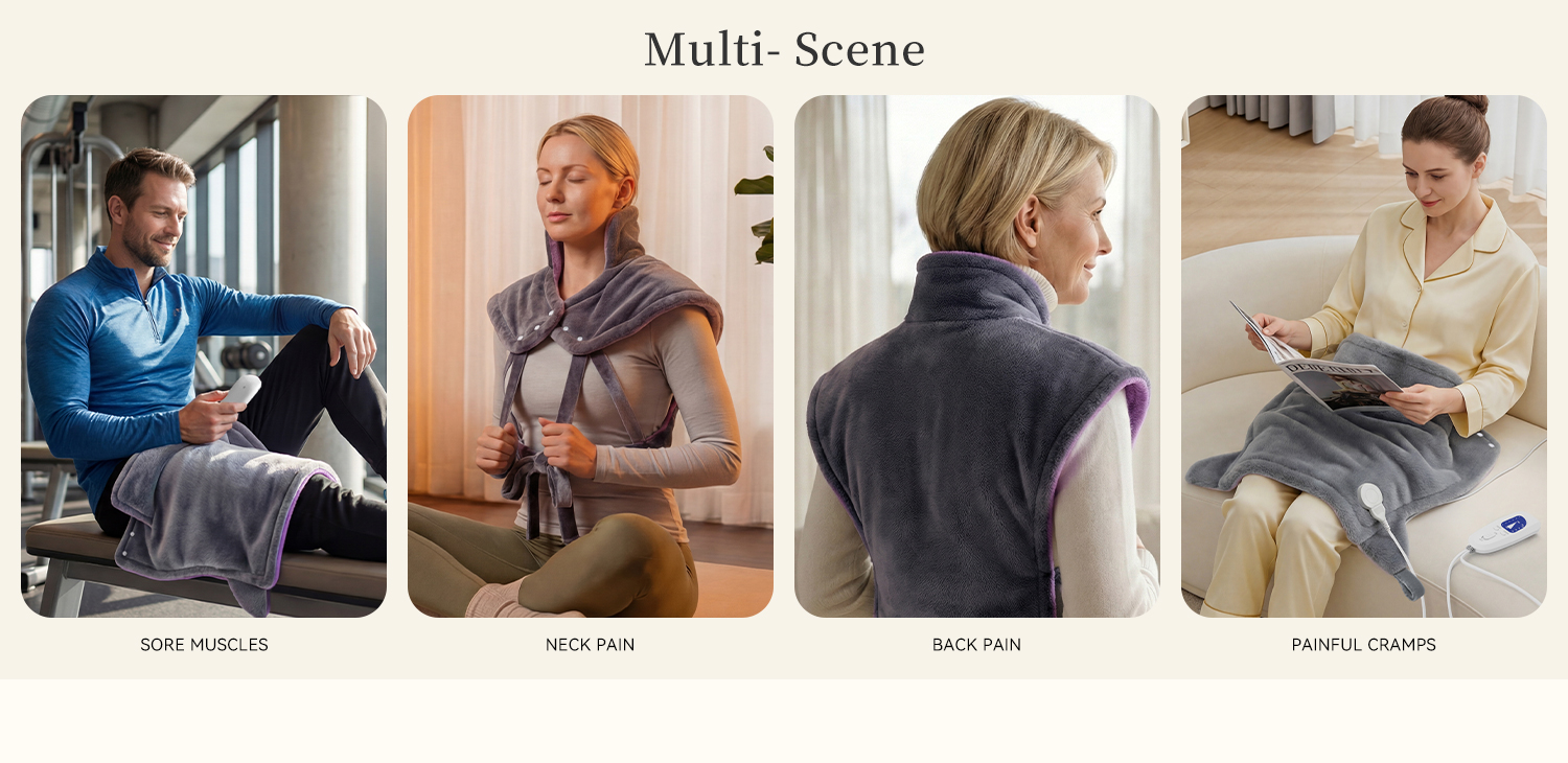 • Snug-Fit Design, Stays in Place Ergonomic design featuring a high collar and 4 adjustable straps for a secure, hands-free fit. This ensures better heat contact and stays in place even when you move.
